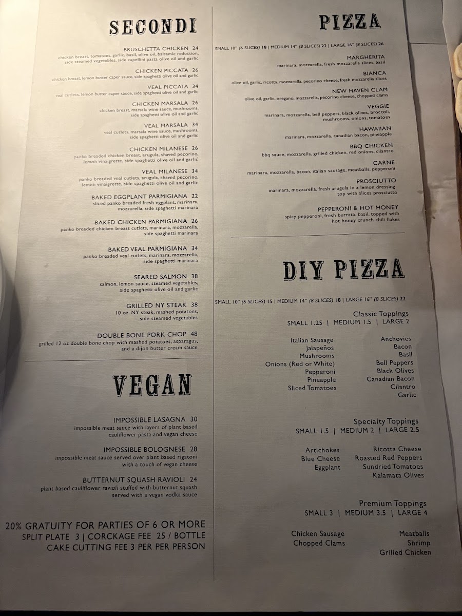 linguine, fresh clams, chopped clams, garlic, pecorino cheese, choice of white wine sauce or marinara