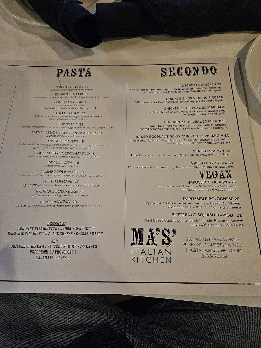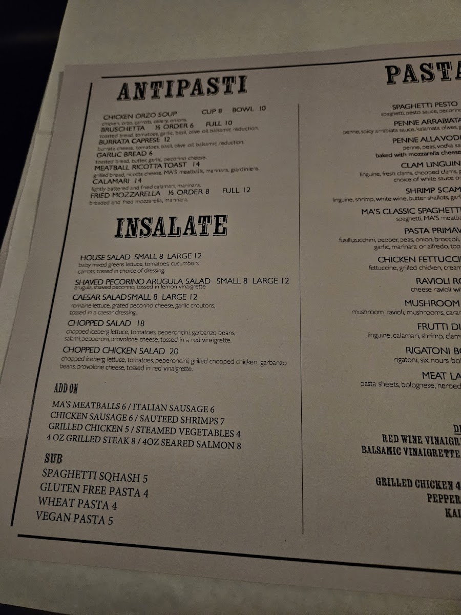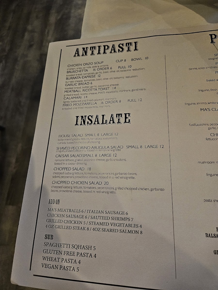 MA'S Italian Kitchen Menu